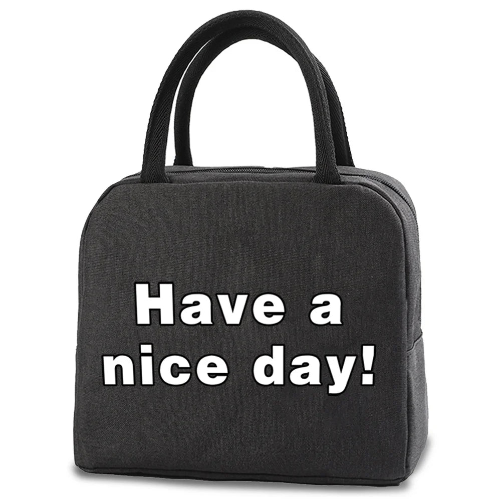 Laissez-vous séduire par la conception intelligente de nos sacs isothermes. Fabriqués à partir d'une toile résistante et dotés d'une doublure isolante en feuille d'étain, ils garantissent une conservation optimale de la température de vos repas, qu'ils soient froids et rafraîchissants ou chauds et réconfortants. Leur design imprimé et élégant, tel le charmant message Have a nice day! visible sur l'image, apporte une touche de personnalité et de bonne humeur à votre journée. De plus, leur nature réutilisable en fait un choix écologique et durable, parfait pour toute la famille : hommes, femmes, enfants ou seniors. Légers, pliables et équipés de doubles poignées robustes ainsi que d'une fermeture pratique à boucle magnétique, ils sont pensés pour simplifier votre quotidien. N'attendez plus pour transformer votre routine repas en une expérience agréable et stylée !
